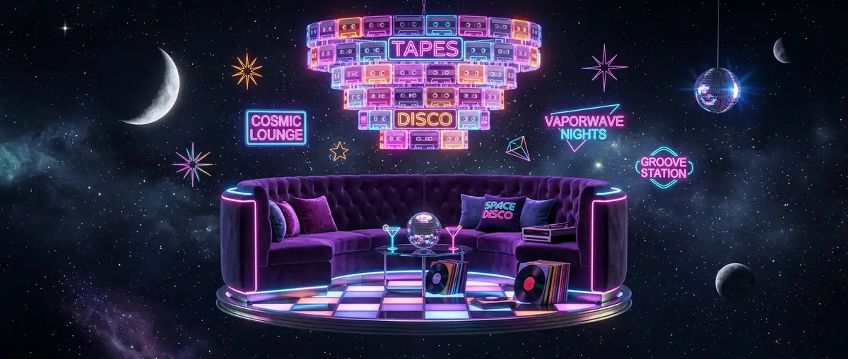 Welcome to the Nebula Roller Rink, a zero-gravity 1970s discotheque floating deep within a neon-lit galaxy. In this universe, rhythm and funk are the primary energy sources, powering massive, retro-futuristic arcade cabinets.